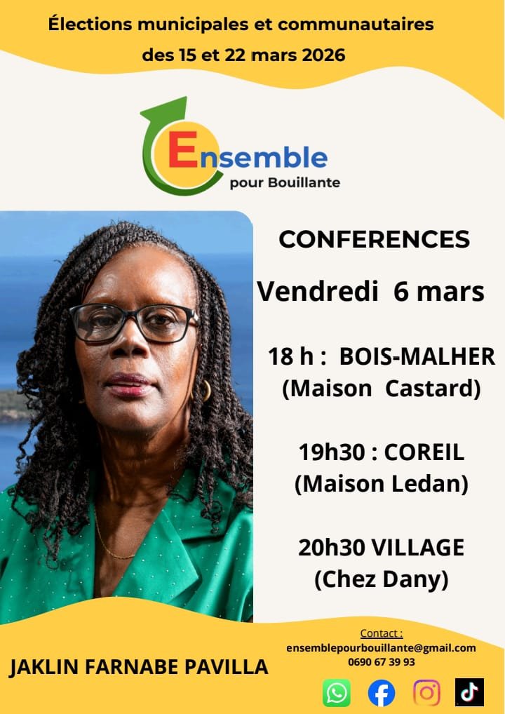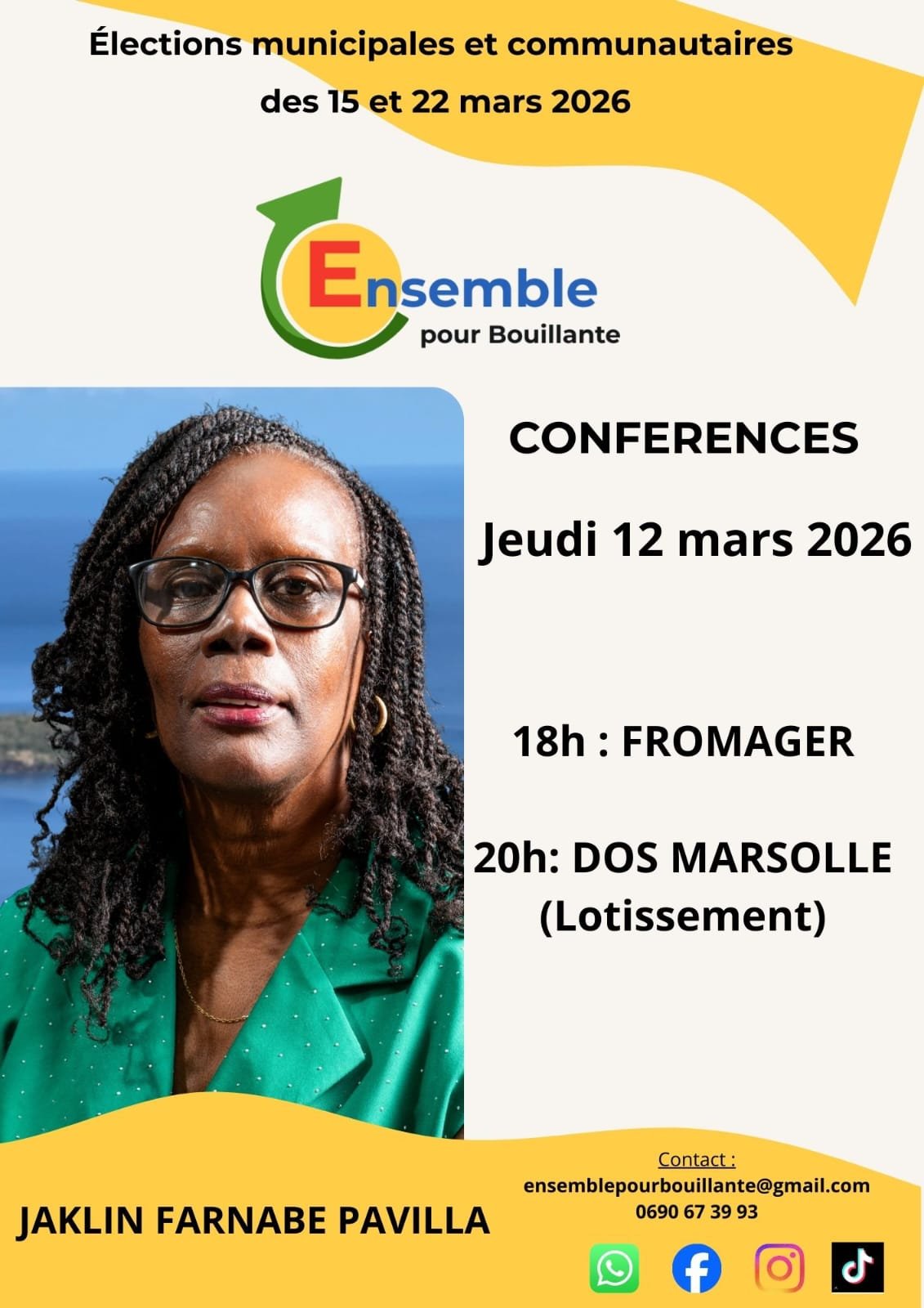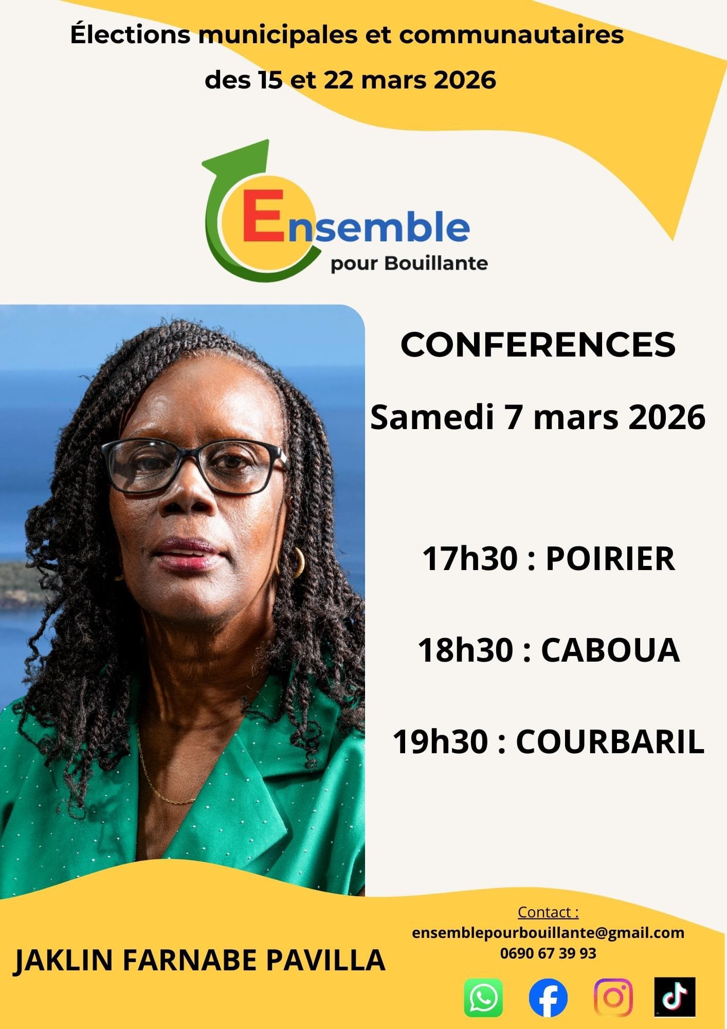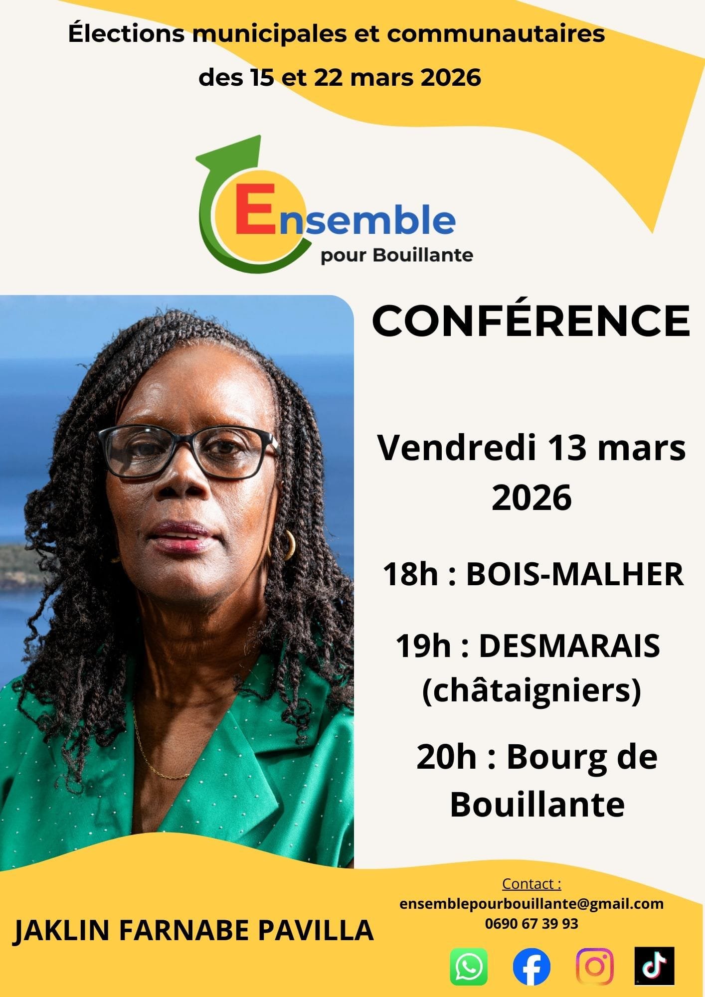 Ma candidature repose sur une conviction simple et forte : les Bouillantaises et les Bouillantais doivent être en mesure de choisir un programme qui nous permet de construire ensemble l'avenir de notre commune. L'équipe que je suis fière de conduire est ancrée dans la réalité locale. Elle est attentive aux besoins de chaque quartier, respectueuse de notre environnement et engagée aux côtés de la jeunesse. Nous voulons renforcer la proximité, soutenir les initiatives locales, valoriser la vie associative et remettre la population au cœur des décisions. En un mot, apprendre à faire société, ensemble.